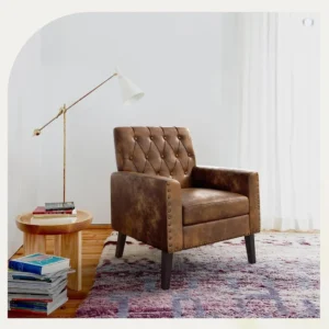 Upholstered Faux Leather Accent Chair 18.5″ H, Button Tufted Armchair, Comfy Living Room Chair with Arms